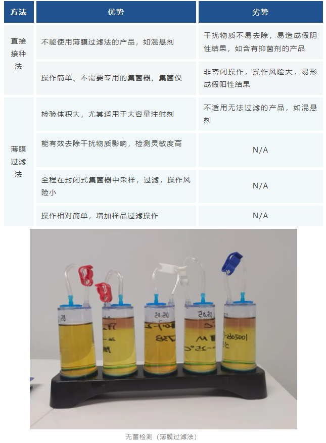 無(wú)菌檢測(cè)的方法主要包括直接接種法和薄膜過(guò)濾法兩種: